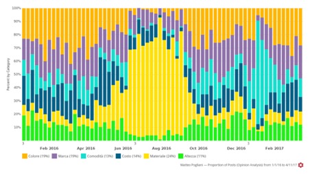 Scoprire attraverso l’ascolto delle conversazioni che c’è un forte buzz sui temi legati alla sostenibilità è una spinta a possibili utilizzi, per esempio, di materiali eco in abiti e calzature.