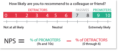 La misurazione è effettuata su scala da 0 a 10, nell’ambito della quale: 0 significa nessuna intenzione di farlo e 10 indica la volontà di farlo. I rispondenti sono segmentati sulla base del giudizio espresso, in particolare, sono identificate tre categorie: Detrattori, Passivi, Promotori. L’indice è dato dalla percentuale dei Promotori meno la percentuale dei Detrattori.