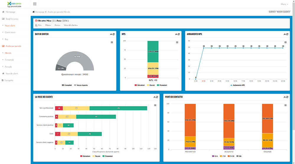 La voce dei Clienti si occupa di un’attività specifica e cioè fornisce all’Azienda gli XDATA, quei dati azionabili che evidenziano le criticità e le eccellenze nella relazione Cliente-Azienda e nei vari punti di contatto dell’Esperienza. Ha l’obiettivo di fornire dati facilmente utilizzabili, con tempistiche molto strette. La Voce dei Clienti traduce i pensieri dei Clienti in numeri, è molto operativa, ma fornisce anche informazioni utili per strategie di breve termine, fa dialogare gli ODATA con gli XDATA: fa parlare i Dati. Voce dei Clienti, numeri, numeri che parlano all’Azienda sia alle funzioni operative sia al Management.