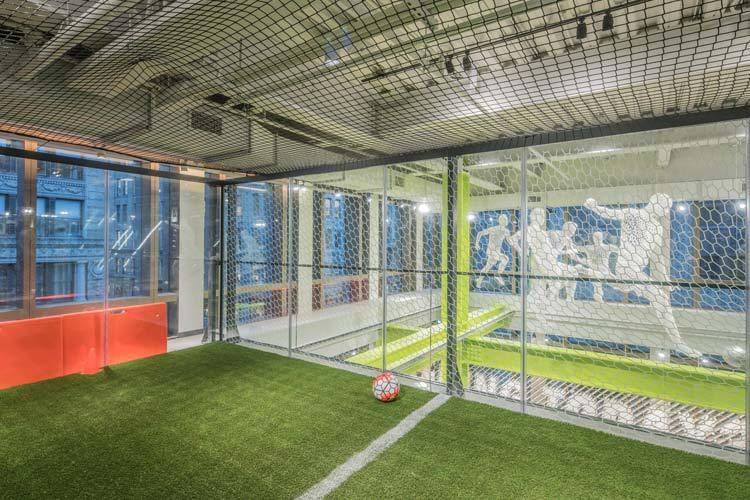 In un diverso piano si trova la Soccer Trial Zone un’area in cui si estende un campo di 400 mq di erba sintetica, in cui il personale ti invita a giocare e nel frattempo spiega le caratteristiche e i vantaggi del prodotto che stai provando.