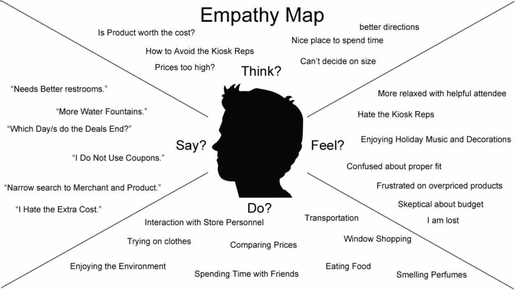 Questi approcci consentono di lavorare sulla “mappa dell’empatia”, che analizza come si sente l’utente, cosa fa, cosa dice e come reagisce a ogni interazione. Man mano che si procede si aggiungeranno i dettagli che rendono la narrazione efficace e comprensibile per tutte le parti coinvolte, magari facendosi aiutare da un grafico per una maggiore chiarezza espositiva. A questo punto si distribuisce la mappa del Customer Journey a tutto il team per cominciare a utilizzarla come strategia di marketing.